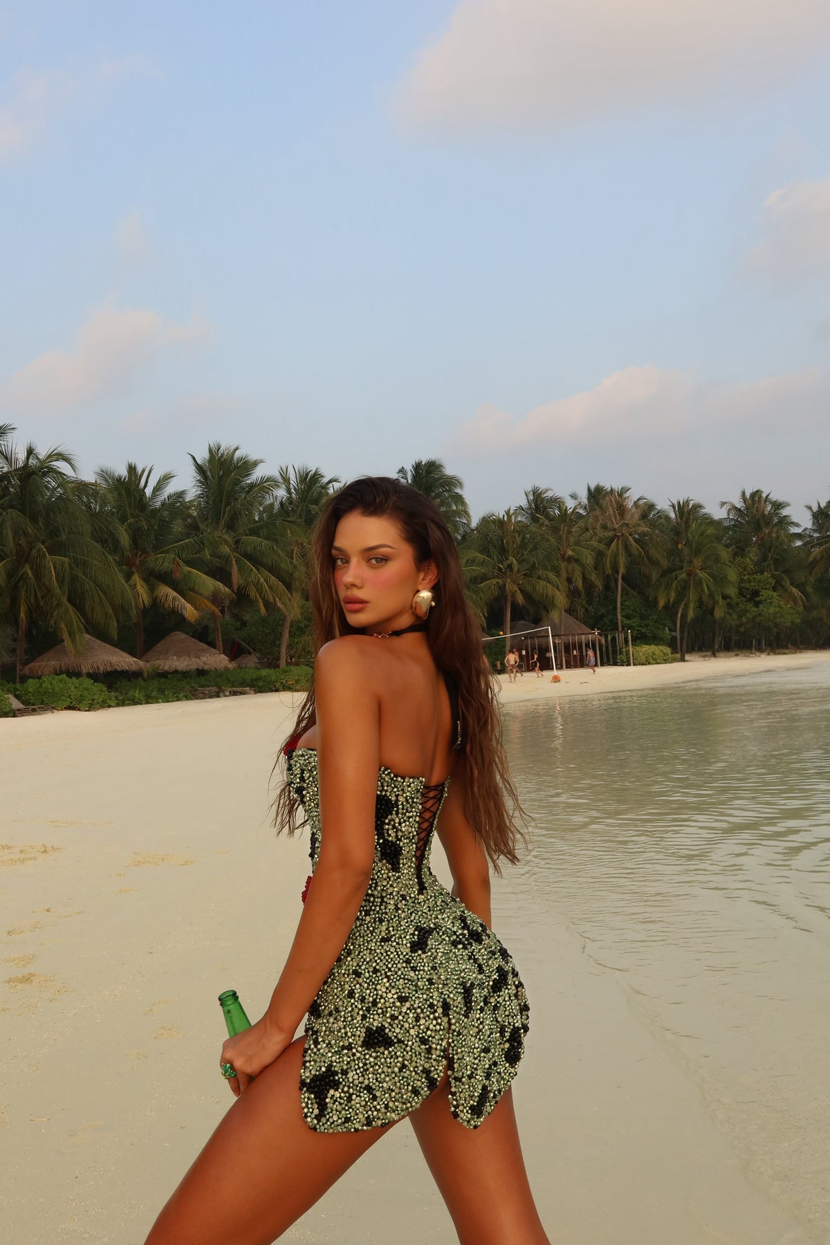 This dress is entirely handcrafted and fully embellished with beadwork, with each bead individually placed by hand directly onto the garment. The beadwork creates rich texture and sculptural depth throughout the entire piece.